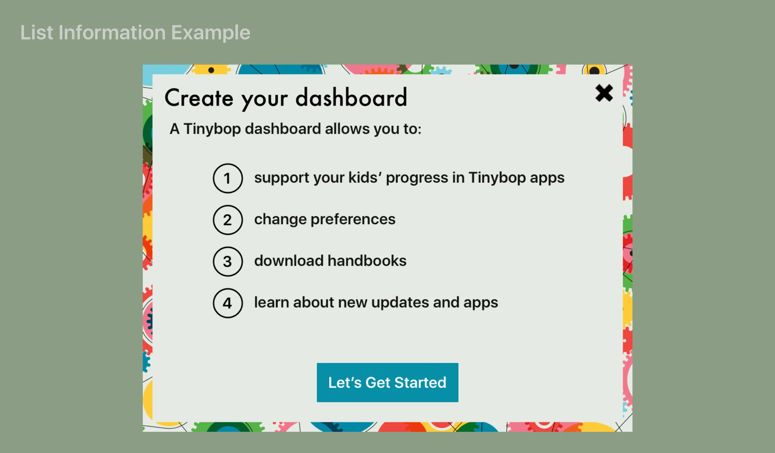 2. Visually break out lists. Effectively showcase the multi-dimensionality of the dashboard and its features.