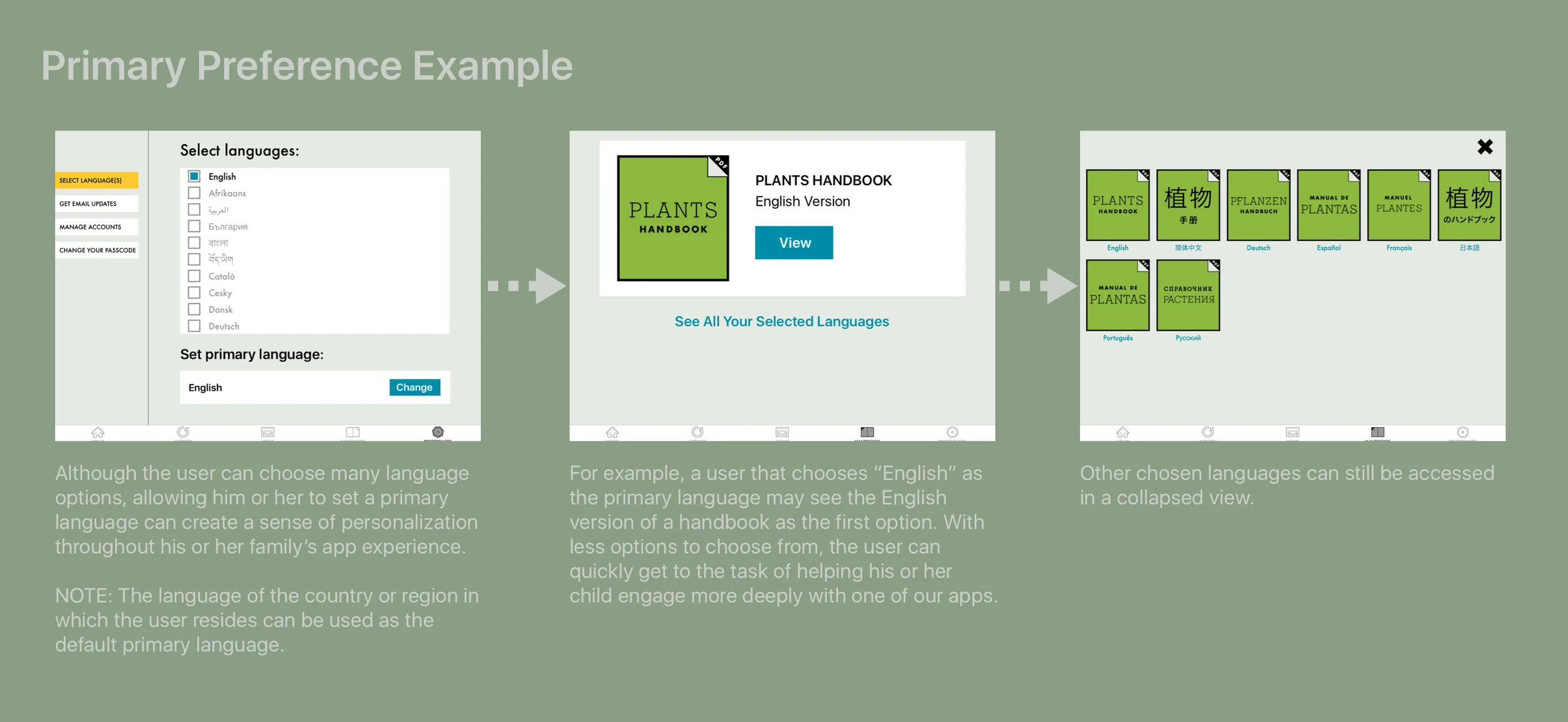 - How many languages does a parent normally choose via his or her Dashboard? How many of those languages are utilized (i.e. used during gameplay, viewed via the Handbook)?